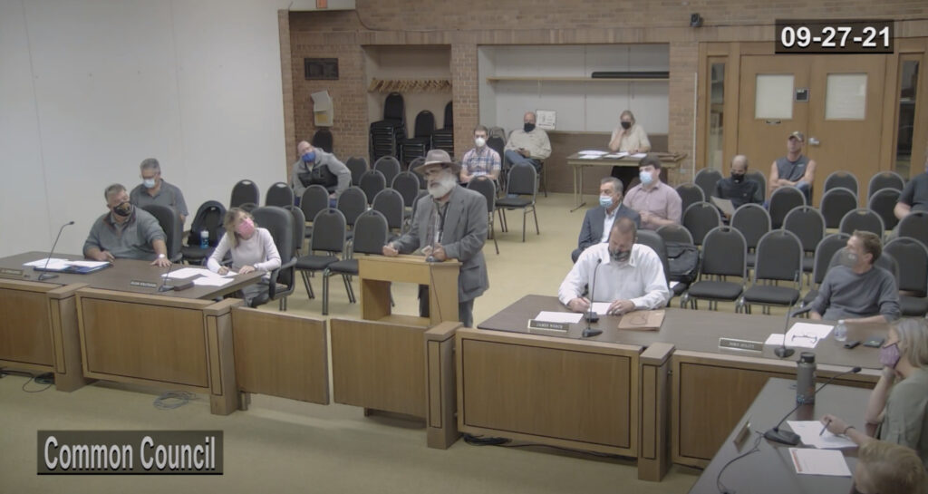 Next, to speak was Ripon Resident Rob Witchow, a former Marine who defended our rights and freedoms as Americans. He demonstrated his right to not comply and speak maskless to the council as well.